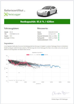 Der Teslalogger bietet jetzt einen Batteriezertifikat an: LINK